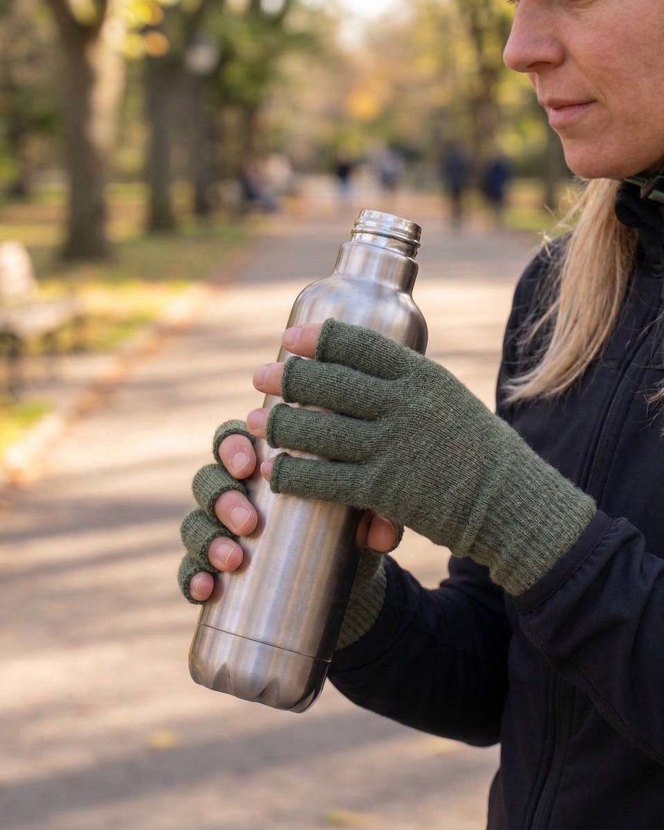 Hergestellt aus 100 % extrafeiner Merinowolle bieten diese fingerlosen Damenhandschuhe leichte Wärme – ideal für kühle Frühlingstage und wechselhaftes Wetter. Merinowolle ist von Natur aus atmungsaktiv und temperaturregulierend, hält die Hände trocken und angenehm und verhindert schwitzige Handflächen. Das weiche, leichte Material sorgt für sanfte Isolierung ohne Volumen, wodurch diese fingerlosen Arbeitshandschuhe perfekt für den Alltag und Übergangszeiten sind. Mit hoher Fingerfertigkeit und elastischem, nicht einschränkendem Stretchdesign halten die fingerlosen Laufhandschuhe die Finger frei zum Texten, Tippen, Radfahren oder für andere tägliche Aktivitäten. Tragen Sie diese fingerlosen Damen-Fahrradhandschuhe bei mildem Wetter allein oder kombinieren Sie sie unter Außenhandschuhen für zusätzliche Wärme, wenn die Temperaturen sinken.