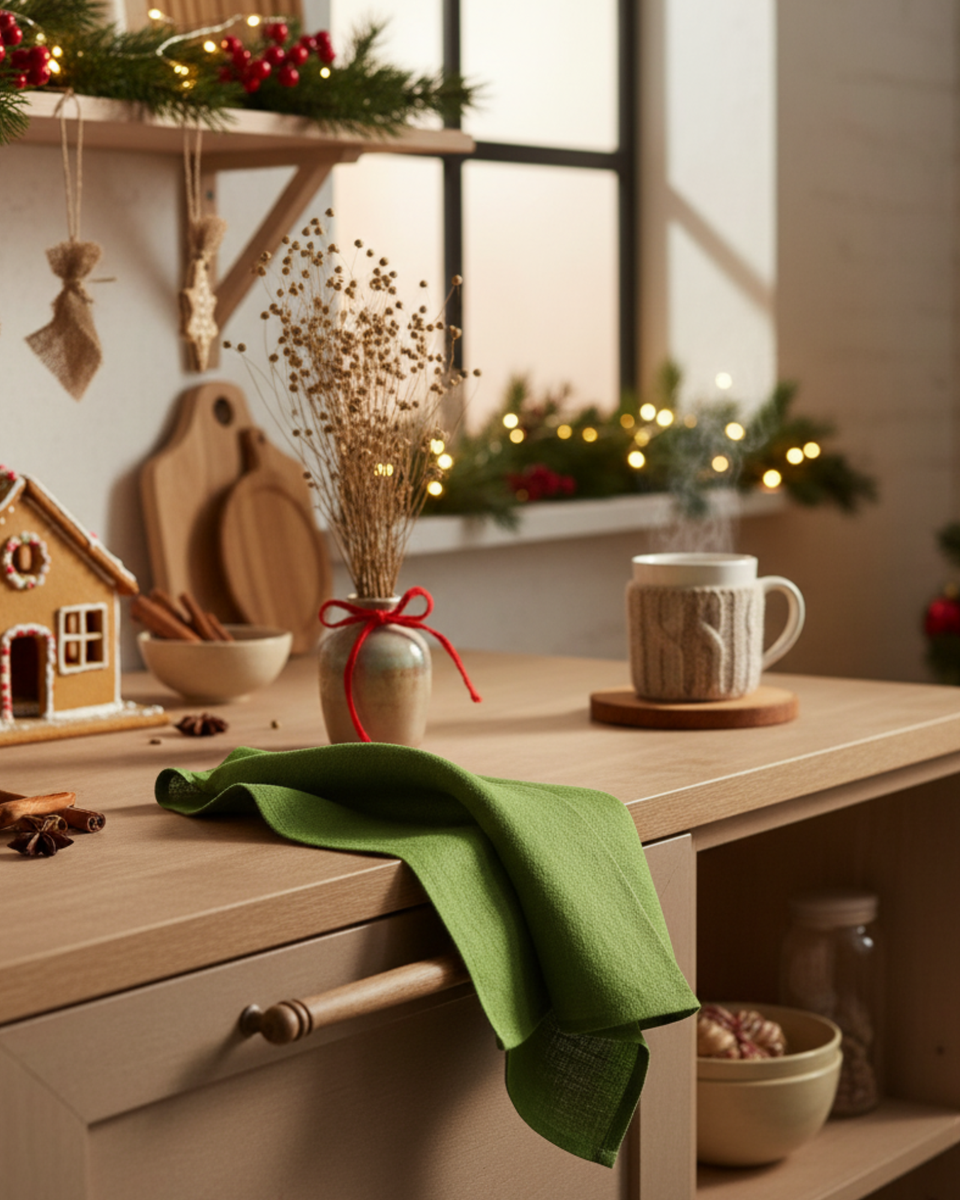 Feiere die Magie von Weihnachten mit unserem roten Geschirrtuch aus 100 % Leinen, das Wärme und Charme in dein festliches Zuhause bringt. Hergestellt aus nachhaltigem, abfallfreiem Leinen, vereint dieses umweltfreundliche Tuch natürliche Schönheit mit weihnachtlichem Geist. Weich, saugfähig und langlebig ist ein Geschirrtuch perfekt zum Abtrocknen von Weihnachtsgeschirr, Einwickeln frisch gebackener Kekse oder zum Dekorieren deiner Küche mit einem gemütlichen saisonalen Akzent. Die satte rote Farbe setzt einen fröhlichen Akzent auf deinem Weihnachtstisch oder im Geschenkkorb. Sorgfältig gefertigt, um viele Weihnachten lang zu halten.  ein zeitloses, natürliches Detail für deine freudigen Feierlichkeiten.