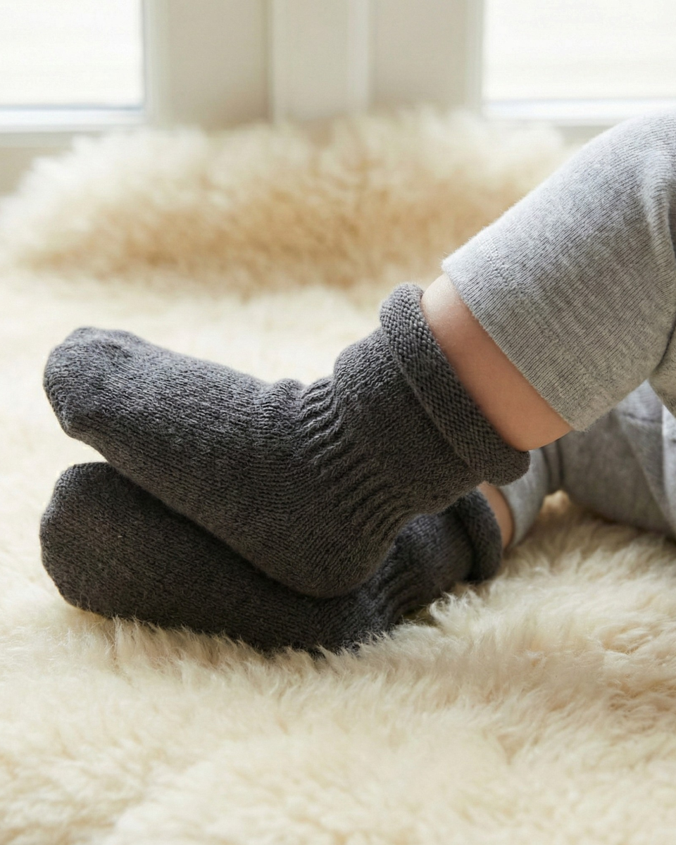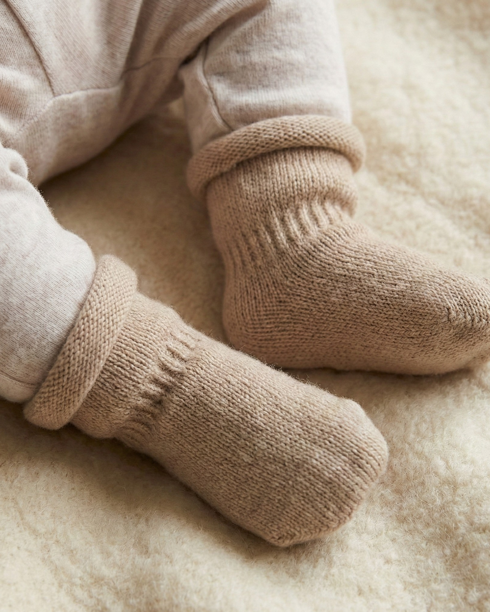 Socken/Fäustlinge der Größe 6–12 Monate: Breite 5 cm; Länge 19 cm.