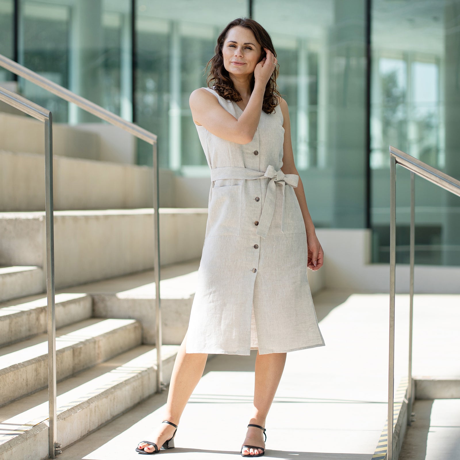 Unsere Damenkleider aus 100 % Leinen sind natürlich, biologisch und sicher für Ihre Haut. Sie sind so konzipiert, dass sie lange halten und fantastisch aussehen – diese Grundnahrungsmittel sind garantiert eine großartige Investition in Ihre Garderobe und den Planeten. Von Midilänge bis knapp über dem Knie hat Menique die perfekte Auswahl an Bio-Kleidern, die Sie vom Frühling über den Sommer bis zurück in den Herbst begleiten. Diese nachhaltig aus zertifiziertem Stoff gefertigten Leinenkleider für Damen sind allein atemberaubend oder können mit einem frischen Bio-Merino-Shirt kombiniert werden – die ultimativen vielseitigen Basics, nach denen Sie jeden Tag greifen werden. Wenn Sie eine Verabredung im Restaurant haben, versuchen Sie einen formellen Look mit unseren Wickel- oder Kittelkleidern. Fühlen Sie sich frei, bei einem Picknick-Date mit Leinen-Tuniken aufs Ganze zu gehen, die eine wunderbar entspannte Passform haben, die allen Körpertypen schmeicheln wird.