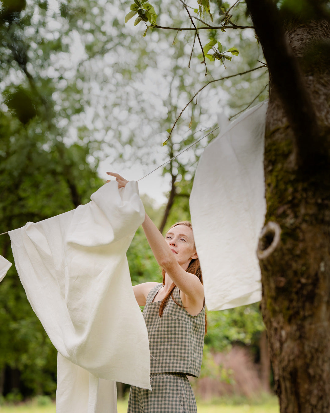 Im Rahmen unseres Engagements für Nachhaltigkeit haben wir den Weg unseres Leinens neu konzipiert. Indem wir Stoffreste aus unseren feinsten Kleidungsstücken wiederverwenden, hauchen wir jedem Faden neues Leben ein und fertigen wunderschöne Basics wie Leinen-Haargummis, Brotbeutel, Taschenorganizer, Babylätzchen, Spucktücher und Servietten.