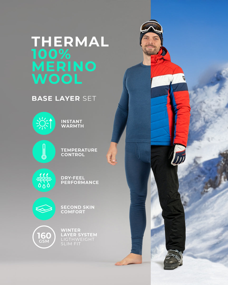 Bewusst gefertigt aus 100 % Merinowolle, kombiniert dieses leichte Thermo-Set für Herren ein klassisches Langarmshirt mit feuchtigkeitsableitenden Hosen – entwickelt für Komfort, Bewegungsfreiheit und einfaches Übereinandertragen. Der Stoff reguliert auf natürliche Weise die Feuchtigkeit, indem er Schweiß von der Haut wegzieht und schnell trocknet, sodass Sie sich bei wechselnden Temperaturen und Aktivitätsstufen wohlfühlen. Für Bewegung ausgelegt, verfügen die Hosen über Flachnähte, die Volumen und Reibung verringern, sowie über ein warmes und zugleich atmungsaktives Tragegefühl, das als Basisschicht unter der Oberbekleidung oder als eigenständiges Outfit bei milderen Bedingungen funktioniert. Weich, glatt und von Natur aus schmutzabweisend, sind beide Teile pflegeleicht und gemacht, um dem Alltag standzuhalten. Von Grillabenden im Freien bis zu entspannten Sonntagen – dieses zweiteilige Set ist bereit für alles, was Ihr Tag bringt.