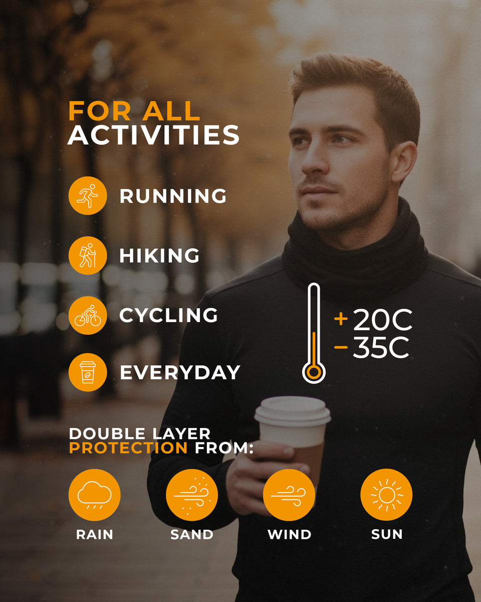 Wenn Sie Outdoor-Aktivitäten lieben, besonders im Winter, liegen Sie mit unserem Unisex-Schlauchschal genau richtig. Mit Blick auf Leistung wurde der Halswärmer entwickelt, um umfassenden thermischen Schutz vor extremen Temperaturbedingungen zu bieten. Das vielseitige und anpassungsfähige Gesichtstuch lässt sich leicht über den Kopf ziehen und bedeckt Hals, Ohren, Mund und Gesicht.