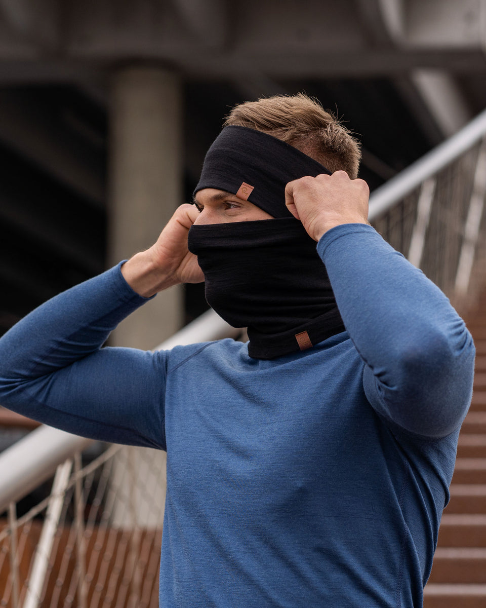 Selbst wenn Sie beim Sport oder einem flotten Spaziergang ins Schwitzen geraten, können Sie sich auf diese feuchtigkeitsableitenden Accessoires verlassen, die Sie trocken und frisch halten. Das Stirnband aus 100 % Merinowolle fängt den Schweiß auf und sitzt auch auf nackter Haut oder seidigem Haar fest (um sie unter Kontrolle zu halten). Außerdem sorgt der Halswärmer dafür, dass Ihr Hals, Mund, Ihre Ohren und Ihr Gesicht vollständig geschützt sind. Und falls das noch nicht genug wäre, kann das Haarband auf zwei Arten getragen werden – gefaltet oder entfaltet. Mit diesem Accessoire-Set liegen Sie immer richtig.
