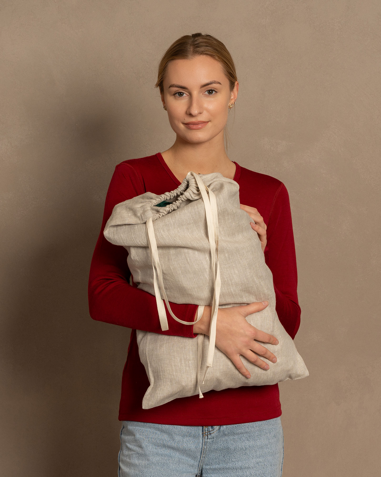 Der Wäschesack aus Leinen ist in der Größe 56 x 71 cm erhältlich.