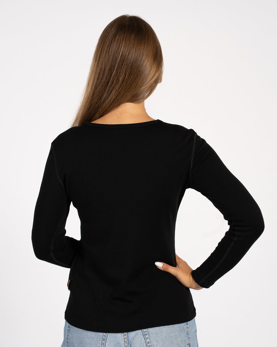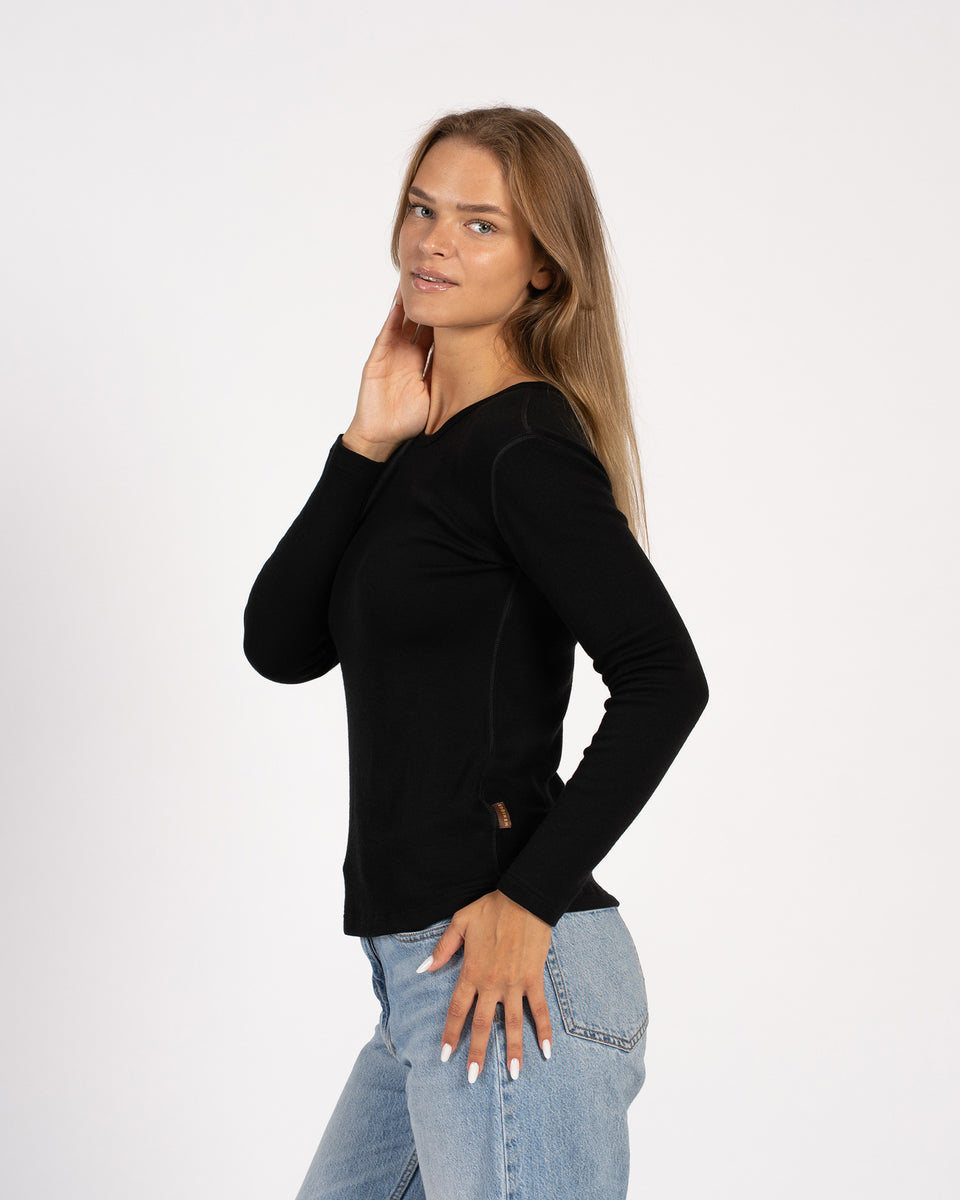 Himmlisch weich im Griff, ist das langärmelige Midweight-Oberteil aus 250 g/m² Merinowolle gefertigt. Es wurde entwickelt, um sich flexibel an einen aktiven Lebensstil anzupassen und gleichzeitig täglichen Komfort zu bieten. Dieses schnell trocknende, feuchtigkeitsableitende Damen-Langarmshirt mit Rundhalsausschnitt ist nicht kratzig, dehnt sich ohne Schweißaufnahme und verfügt über eine nahtlose Silhouette, die sich trotz der körperbetonten Form frei mit Ihrem Körper bewegt. Mit natürlichen antimikrobiellen und geruchsresistenten Eigenschaften hält der atmungsaktive Pullover Sie bei einer Vielzahl von Temperaturen angenehm, was ihn perfekt für späte Herbstläufe oder Abenteuer in der Natur macht. Luxuriös genug, um ihn öffentlich zu tragen, lässt er sich wunderschön mit hochgeschnittenen Jeans oder passenden Hosen für einen kompletten, stilvollen Look kombinieren.