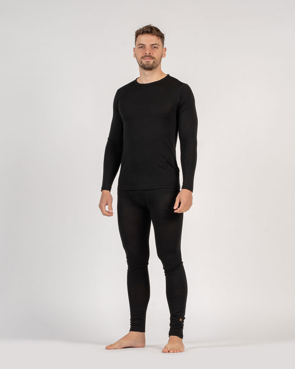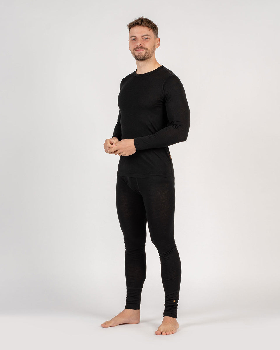 Bleiben Sie in diesem erstaunlichen Set von menique in Schwung – es bietet Ihnen zweifellos großen Komfort bei Ihren Aktivitäten in dieser Saison. Unser Fokus auf Komfort und Bewegungsfreiheit sorgt dafür, dass Ihr Outfit an Ort und Stelle bleibt, während Sie unterwegs sind. Dieses zweiteilige Set ist genau für Sie gemacht. Das atmungsaktive Oberteil mit Rundhalsausschnitt sitzt locker am Körper, ohne zu weit zu sein. Für optimalen Schutz sind die klassischen Hosen warm, schnelltrocknend und mit Flatlock-Nähten versehen, damit Sie absolute Bewegungsfreiheit genießen können. Beide Kleidungsstücke sind aus unserer leichten und geschmeidig-dehnbaren Merinowolle gefertigt, die von Natur aus Feuchtigkeit effektiv reguliert. Der 100 % biologische Stoff ist zudem sehr pflegeleicht und fleckenresistent.