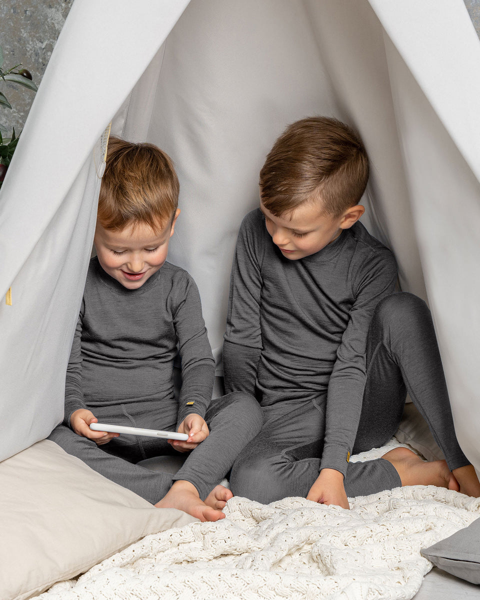 Das sensationelle menique-Set bietet ein modernes und unisex Design, handgestrickt aus 100 % umweltfreundlicher Merinowolle. Mit einem 160 g/m² Langarmshirt und passenden Hosen ist das zweiteilige Set so lebendig und verspielt wie langlebig und hochwertig gefertigt. Ob beim Herumtollen im Garten oder beim Klettern auf alles, was sich bietet – das leichte und atmungsaktive Set sorgt für Bewegungsfreiheit, hält den Körper im Winter warm und im Sommer angenehm kühl. Für den Alltag ist das vielseitige Teil fleckenresistent und super pflegeleicht. Das ist der wahre Mehrwert, der den Waschtag für vielbeschäftigte Mütter einfacher macht. Außerdem bietet das besondere Lieblingsstück natürlichen UV-Schutz und antimikrobielle Eigenschaften. Machen Sie diese Saison daraus ein Zwillings-Duo.