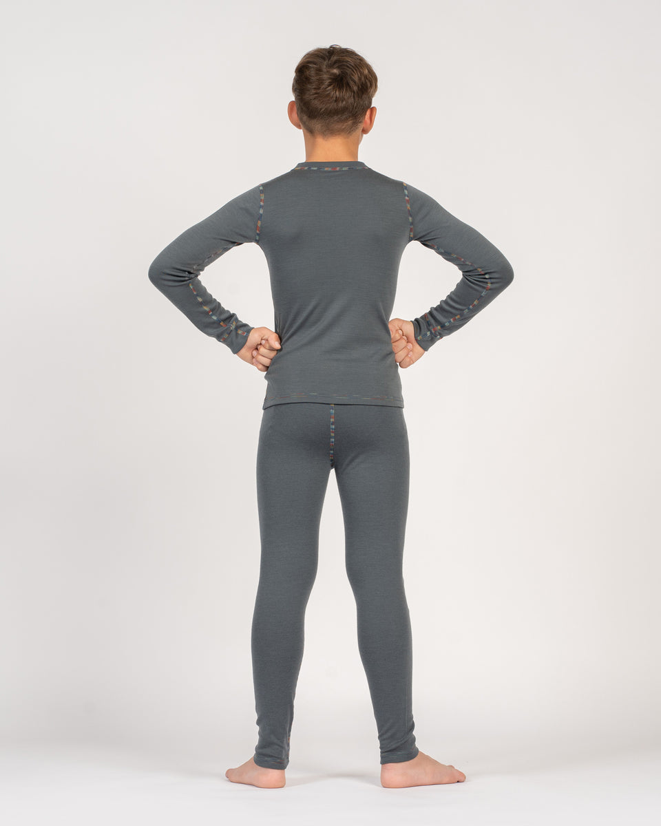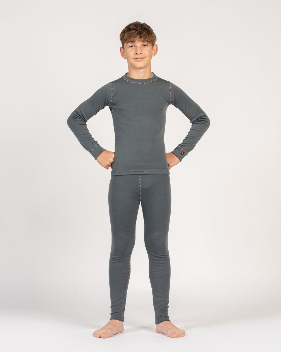 Manche Tage sind zum Bäume klettern da, andere für faule Sonntagnachmittage; das unglaublich weiche, langärmelige zweiteilige Set bietet eine bequeme Passform, die sich leicht dehnt und dein Mini-me in luxuriöse Weichheit hüllt. Atmungsaktiv und vielseitig ist dieses Set ideal als kuschelige Schicht unter der Kleidung oder als Schlafanzug. Mit Blick auf Eltern entworfen, bilden unsere Kinderleggings und das langärmelige Shirt ein ultra-bequemes, großartig aussehendes Set, bewusst gefertigt aus 100 % Bio-Merinowolle. Perfekt für alle Arten von Aktivitäten bleibt das Bio-T-Shirt an seinem Platz, leitet Feuchtigkeit ab, während dein Kind spielt, und sorgt für Wärme in der Ruhephase. Sein Feuchtigkeitstransportsystem leitet Schweiß von der Haut weg und hält den Körper deines Kindes geruchsfrei. Natürlich antibakteriell sorgt dieses Material für ganztägige Trockenheit und Komfort, egal ob als Outfit für Outdoor-Abenteuer oder als magischer Schlafanzug getragen.