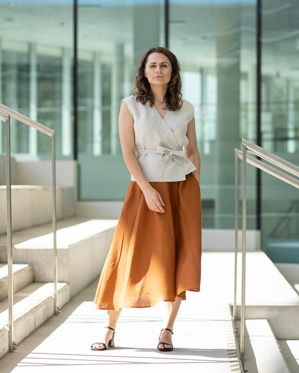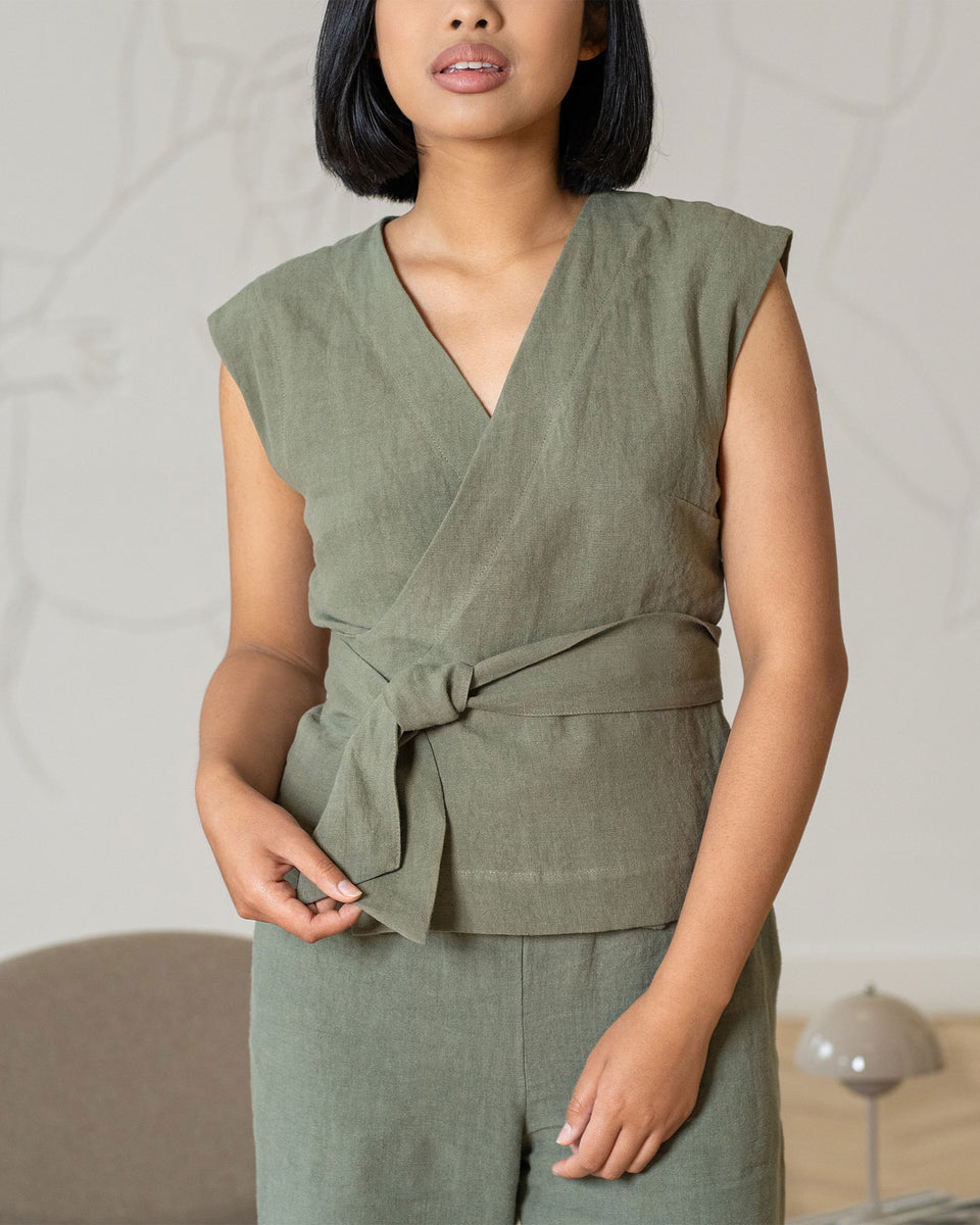 Ärmelloses Leinen-Kimono-Wickeltop Ruby